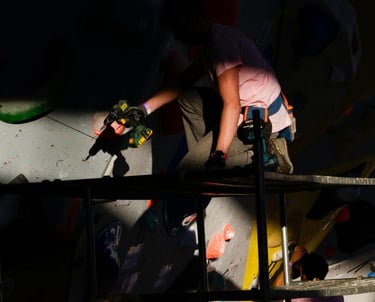 Nuestro trabajo no consiste solo en colocar presas, sino en construir recorridos que enseñan, divierten y enganchan. Buscamos variedad de estilos, uso inteligente del espacio, dificultad progresiva y líneas que inviten a repetir. Con criterios actuales de escuela europea, control de cargas y metodología profesional, logramos una inauguración sólida, memorable y con identidad propia para tu sala.