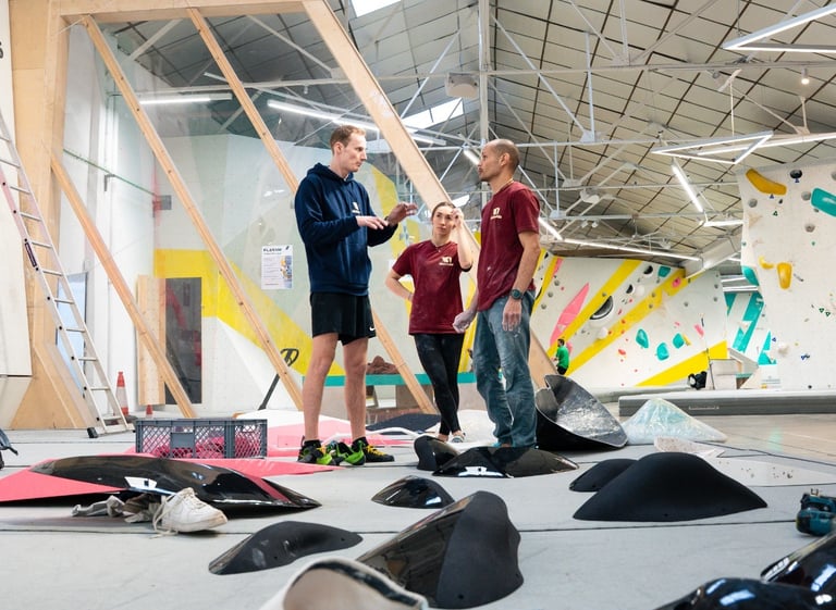 Nuestro trabajo no consiste solo en colocar presas, sino en construir recorridos que enseñan, divierten y enganchan. Buscamos variedad de estilos, uso inteligente del espacio, dificultad progresiva y líneas que inviten a repetir. Con criterios actuales de escuela europea, control de cargas y metodología profesional, logramos una inauguración sólida, memorable y con identidad propia para tu sala.